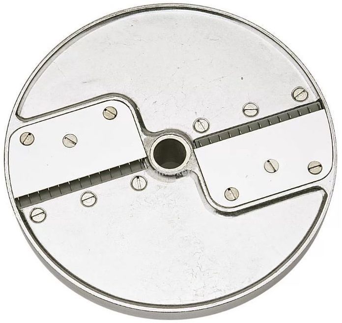 Диск-соломка Robot Coupe 27072 используется совместно с овощерезками CL50 и CL50 Ultra, CL52, CL55, CL60 и кухонными процессорами R502, R652 для нарезки соломки из овощей и фруктов и дальнейшего использования ее в качестве ингредиента для приготовления супов, гарниров и других блюд на предприятиях общественного питания и торговли. Изделие выполнено из алюминия.