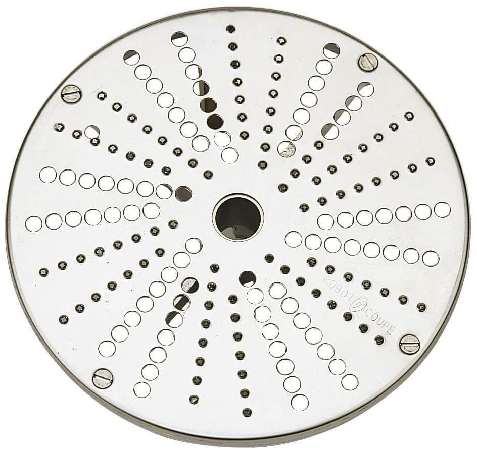 Диск-терка Robot Coupe 27191 используется совместно с овощерезками CL20, CL30 Bistro, CL40 и кухонными процессорами R211 XL и R211 XL Ultra, R301 Ultra, R402 для натирания и шинковки картофеля и дальнейшего использования его в качестве ингредиента для картофельного пирога, драников и других блюд на предприятиях общественного питания и торговли. Изделие выполнено из нержавеющей стали.