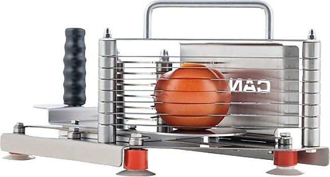 Аппарат CanCan 1308-1 используется для нарезки ломтиками томаты на предприятиях общественного питания, торговли, пищевых производствах и в домашних условиях. Модель оснащена ножками-присосками. Материал лезвий - высококачественная нержавеющая сталь.