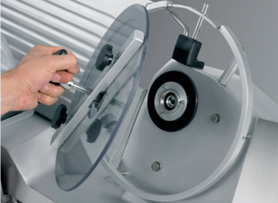 Слайсер Rheninghaus Mondial 350 используется на предприятиях общественного питания и торговли для нарезки колбас и мясных деликатесов. Модель оснащена затачивающим устройством, позволяющим постоянно держать режущую кромку ножа острой, и толкателем. Внешние детали выполнены из алюминия, толкатель - из пищевой нержавеющей стали.