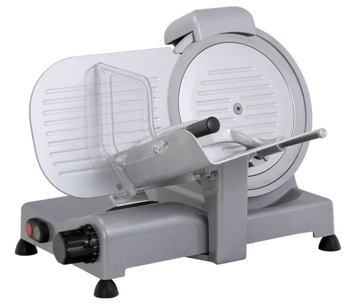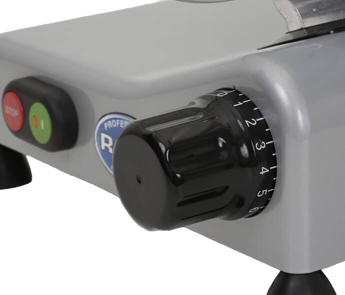 Слайсер RGV Lusso 300 S-L Prof применяется для тонкой нарезки твердых сыров, овощей, фруктов и других видов продуктов на предприятиях общественного питания, торговли и пищевых производствах. Материал корпуса - лакированный алюминий, деталей - пластик.