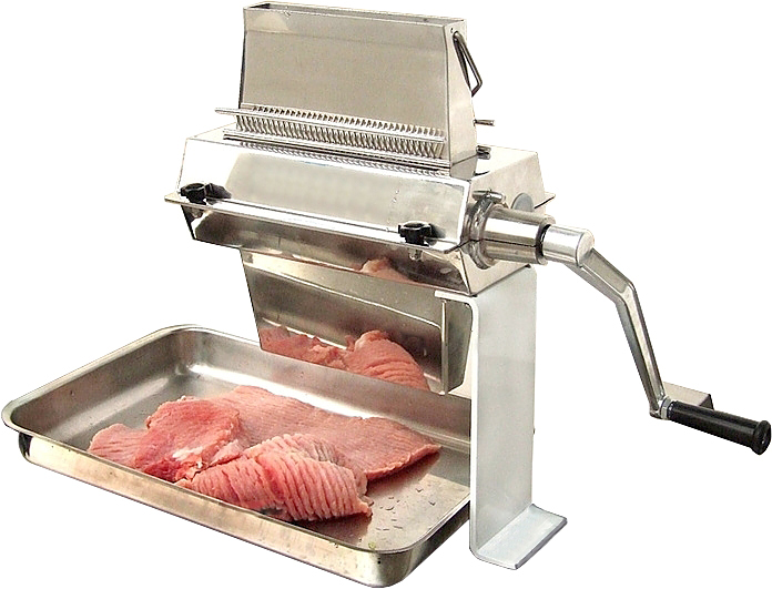 Настольный мясорыхлитель Kocateq GMTS737 используется на предприятиях общественного питания и торговли для прорезания твердых жил и волокон кусков мяса, сшивания обрезков мяса, используемого для приготовления стейков. Модель оснащена меxаническим приводом, вращаемым рукой ручки. Корпус выполнен из нержавеющей стали.