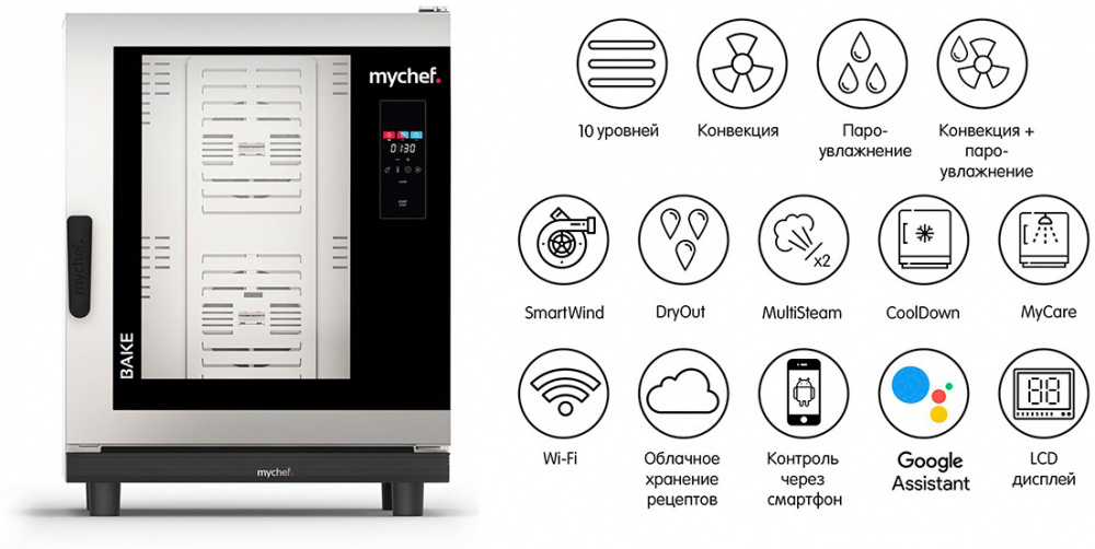 - Облачное хранение рецептов и параметров приготовления на базе сайта Mychef с возможностью подключения нескольких печей