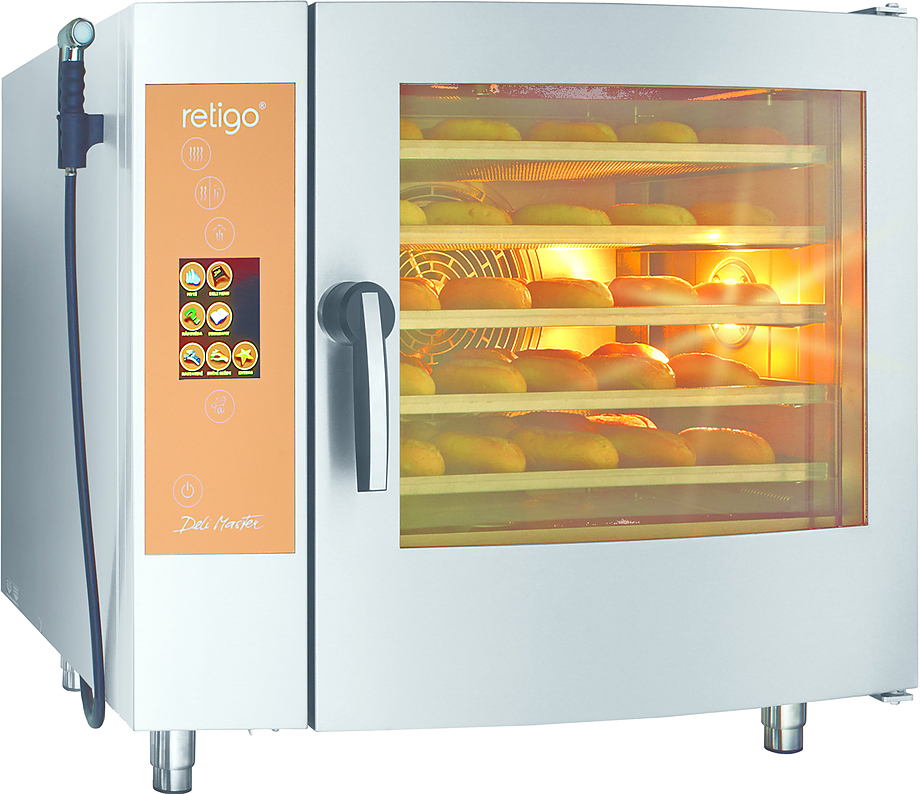 Конвекционная Retigo DM5 используется для выпечки хрустящего сладкого и соленого печенья, багетов, булок для бутербродов и гамбургеров и прочих хлебобулочных изделий, прожарки мяса на предприятиях общественного питания, торговли и пищевых производствах. Шкаф оснащен сенсорной панелью управления.