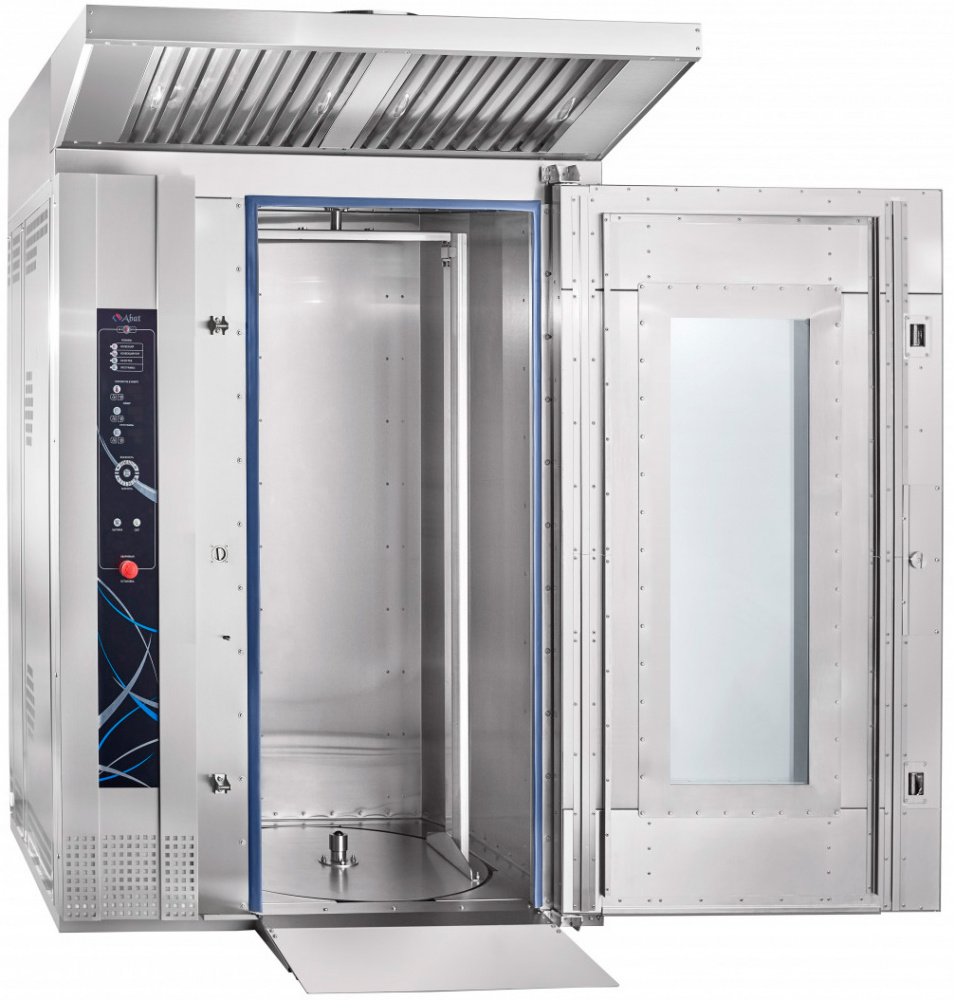 Ротационный пекарский шкаф Abat РПШ-16-2/1М предназначен для приготовления хлебобулочных и кондитерских изделий, различных блюд методом обработки паром и горячим воздухом по отдельности или комбинированно на предприятиях общественного питания и торговли. Модель оснащена панелью управления с таймером, возможностью корректирования программ во время выпечки и отображения информации о режимах работы и аварийных ситуациях.