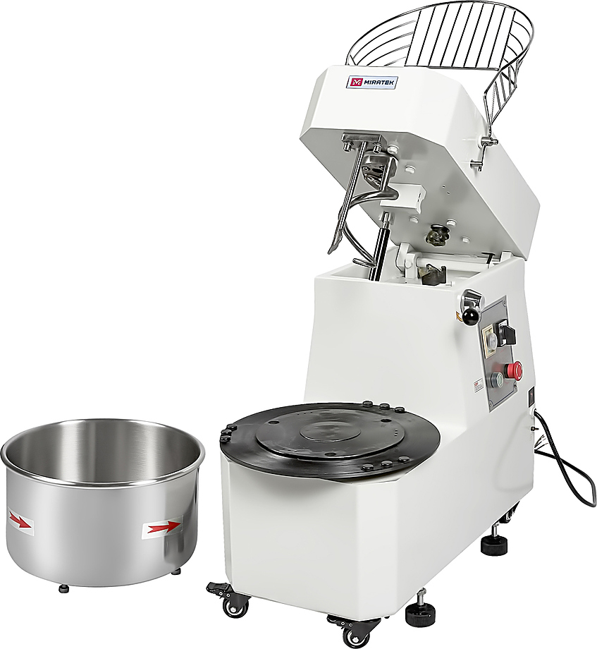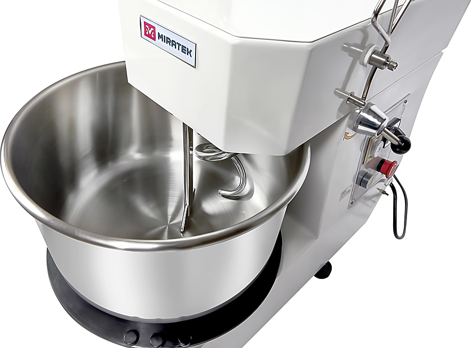 Спиральный тестомес Miratek PRS-20 используется в пекарнях, кондитерских, на предприятиях общественного питания и торговли для замешивания теста с различной основой и консистенцией для выпечки большого ассортимента хлебобулочной продукции из пшеничного, ржаного и ржано-пшеничного теста.