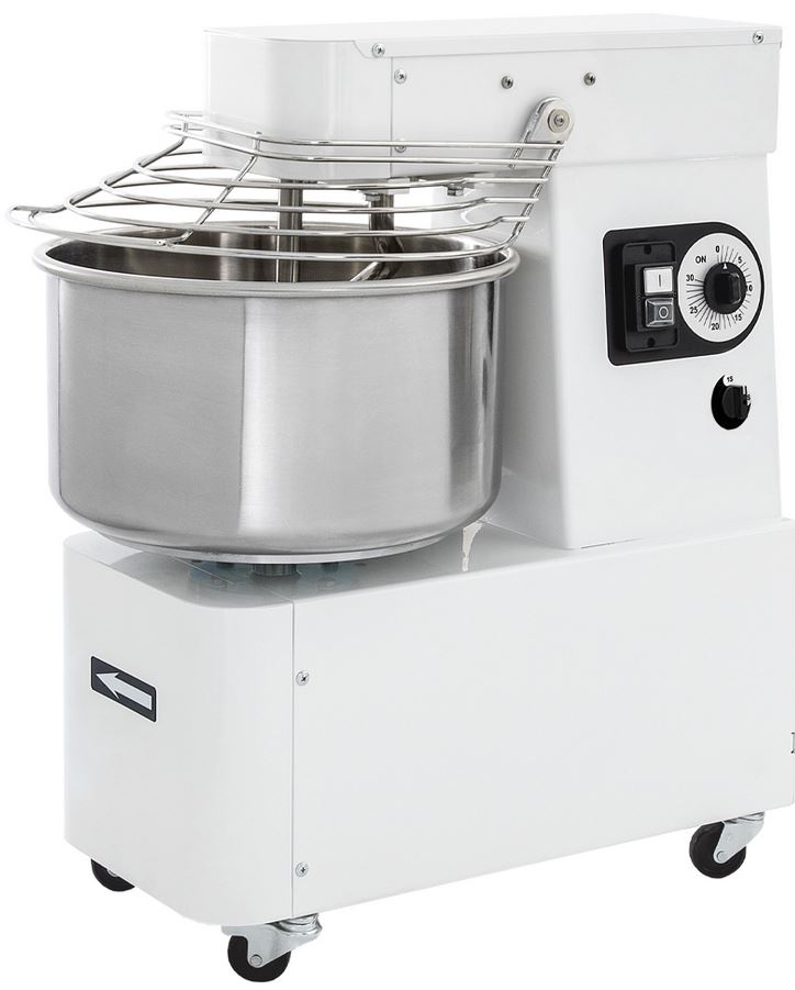 Спиральный тестомес Prismafood IBT 30 2V "EVO" предназначается для замеса слоеного, сдобного и дрожжевого теста на предприятиях общественного питания, торговли и пищевых производствах. Из полученного теста можно испечь хлеба, булочки, пироги, пиццы, лепешки и другие хлебобулочные изделия. Тестомес имеет в своей конструкции дежу, спиралевидный месильный орган, тесторазделительный стержень, крышку, колеса, приводной механизм и крюк из нержавеющей стали. Модель оснащена таймером и предохранительным выключателем на крышке. Управление при помощи электромеханической панели. Материал корпуса - окрашенная сталь.