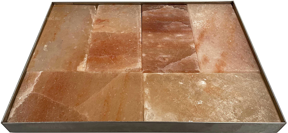 Состав комплекта - 6 соляных блоков из гималайской соли. Материал лотка - нержавеющая сталь.