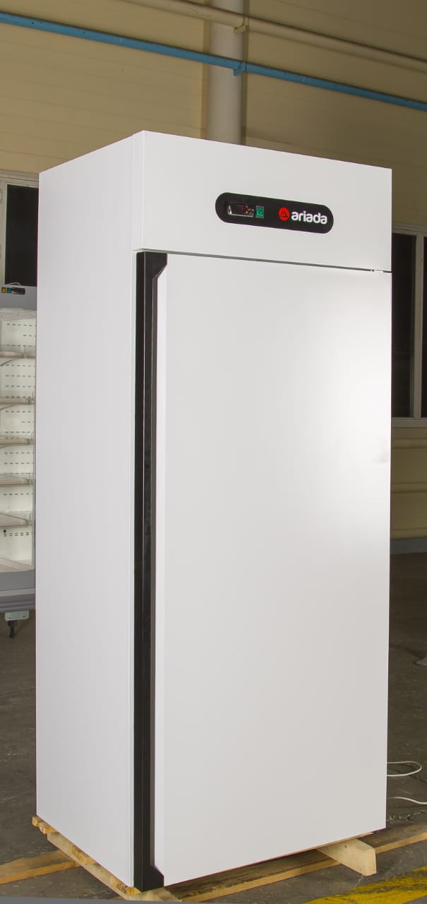 Холодильный шкаф Ариада A700M линии Ария используется для демонстрационной выкладки, охлаждения и кратковременного хранения скоропортящихся продуктов и напитков на предприятиях торговли, общественного питания и пищевых производствах. Модель оснащена электронным блоком управления, автоматическим размораживанием, 4 полками, встроенным холодильным агрегатом, распашной дверью, магнитным уплотнителем, доводчиком дверей, энергосберегающей LED-подсветкой и регулируемыми опорами. Материал цельнозаливного корпуса и двери - оцинкованная сталь, покрытая полимерной краской.