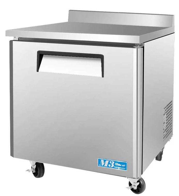 Холодильный стол Turbo air CMWR-28L используется на предприятиях общественного питания, торговли и пищевых производствах для обработки, охлаждения и кратковременного хранения продуктов, а также для раскатки теста. Стол оснащен динамической системой охлаждения, аналоговым управлением и установлен на 4 колеса (2 фронтальные со стопорами). Материал корпуса - нержавеющая сталь, материал задней стенки и пола - гальванизированная сталь, материал пола - нержавеющая сталь с алюминиевыми вставками, материал регулируемой полки - толстая стальная проволока с виниловым покрытием.