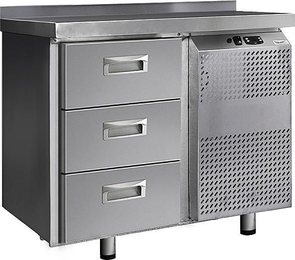 Холодильный стол Finist СХС-600-0/3 используется на предприятиях общественного питания, торговли и пищевых производствах для хранения и обработки полуфабрикатов из мяса и рыбы, заготовок для салата, охлажденных напитков и прочих пищевых продуктов. Управление при помощи кнопочной панели управления, оснащенной цифровым дисплеем. 3 выдвижных ящика, агрегатный отсек располагается сбоку. Стол установлен на ножки с подпятниками. Материал корпуса - нержавеющая сталь.