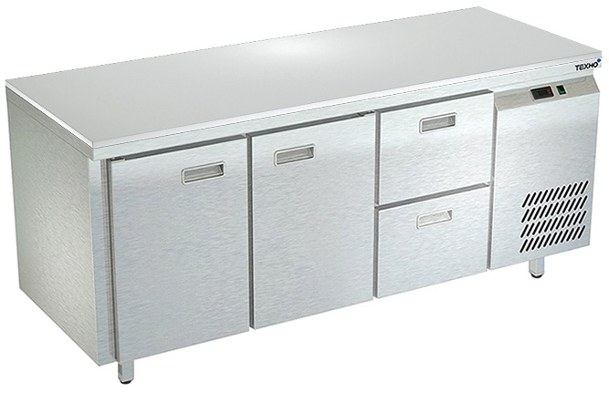 Холодильный стол Техно-ТТ СПБ/О-522/22-1807 предназначается для раскатки теста, обработки, охлаждения и кратковременного хранения продуктов и напитков на предприятиях общественного питания, торговли и пищевых производствах. Секции оснащены направляющими и ящиками с доводчиками. Материал корпуса - нержавеющая сталь AISI 430, материал столешницы - полипропилен (толщина 20 мм), материал задней панели и дна - оцинкованная сталь.