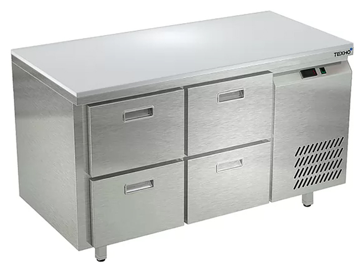 Холодильный стол Техно-ТТ СПБ/О-523/04-1307 предназначается для раскатки теста, обработки, охлаждения и кратковременного хранения продуктов и напитков на предприятиях общественного питания, торговли и пищевых производствах. Секции оснащены направляющими и ящиками с доводчиками. Материал корпуса - нержавеющая сталь AISI 430, материал столешницы - полипропилен, материал задней панели и дна - оцинкованная сталь.