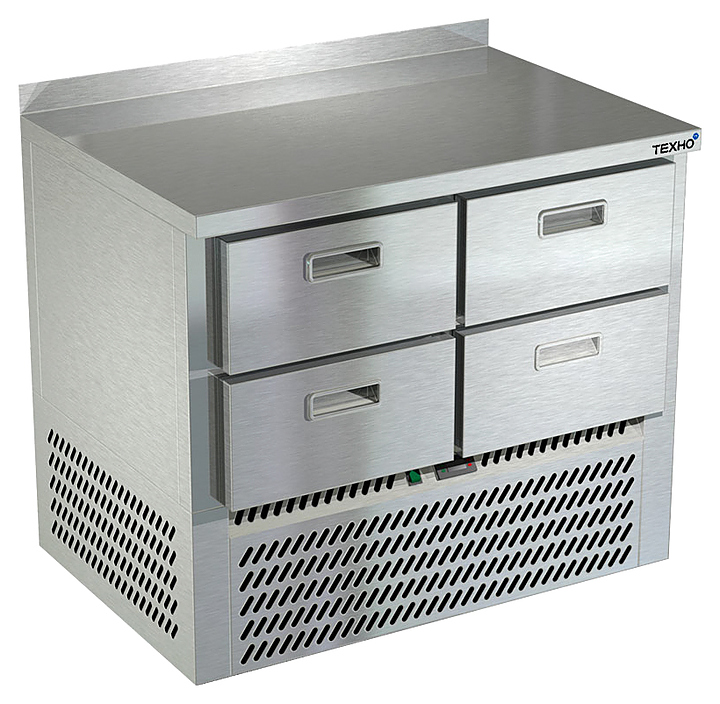 Холодильный стол Техно-ТТ СПН/О-223/04-1006 предназначается для раскатки теста, обработки, охлаждения и кратковременного хранения продуктов и напитков на предприятиях общественного питания, торговли и пищевых производствах. Секции оснащены направляющими и ящиками с доводчиками. Материал корпуса и столешницы - нержавеющая сталь AISI 430, материал задней панели и дна - оцинкованная сталь.
