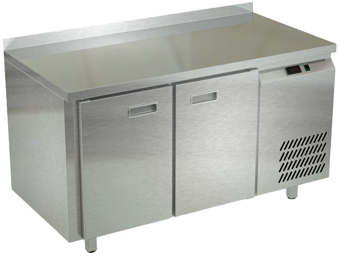 Холодильный стол Техно-ТТ СПБ/Т-221/20-1307 предназначается для раскатки теста, обработки продуктов и ингредиентов, заморозки и хранения продукции, а также для размещения теплового оборудования на предприятиях общественного питания, торговли и пищевых производствах. Двери оснащены доводчиками. Материал корпуса и столешницы - нержавеющая сталь AISI 430, материал дна и задней панели - оцинкованная сталь.