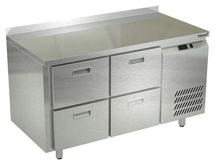 Холодильный стол Техно-ТТ СПБ/Т-223/04-1306 предназначается для раскатки теста, обработки продуктов и ингредиентов, заморозки и хранения продукции, а также для размещения теплового оборудования на предприятиях общественного питания, торговли и пищевых производствах. Двери оснащены доводчиками. Материал корпуса и столешницы - нержавеющая сталь AISI 430, материал дна и задней панели - оцинкованная сталь.