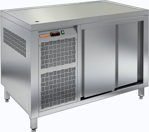 Закрытый стол с охлаждаемой поверхностью HICOLD SO-13/7 SD используется на предприятиях общественного питания, торговли и пищевых производствах для кратковременного хранения, демонстрации и разделки сырого мяса и рыбы, производства карамели и других кондитерских изделий, требующих пониженной температуры изготовления, а также для приготовления и порционирования суши и роллов и других готовых блюд. Стол оснащен холодильным агрегатом сбоку и дверьми-купе. Материал корпуса и столешницы - нержавеющая сталь.