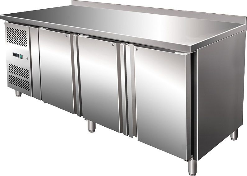 Холодильный стол предназначен для раскатки теста и обработки ингредиентов для приготовления бдюд, охлаждения и кратковременного хранения скоропортящихся продуктов и напитков на предприятиях общественного питания и торговли. Корпус выполнен из нержавеющей стали AISI 304.