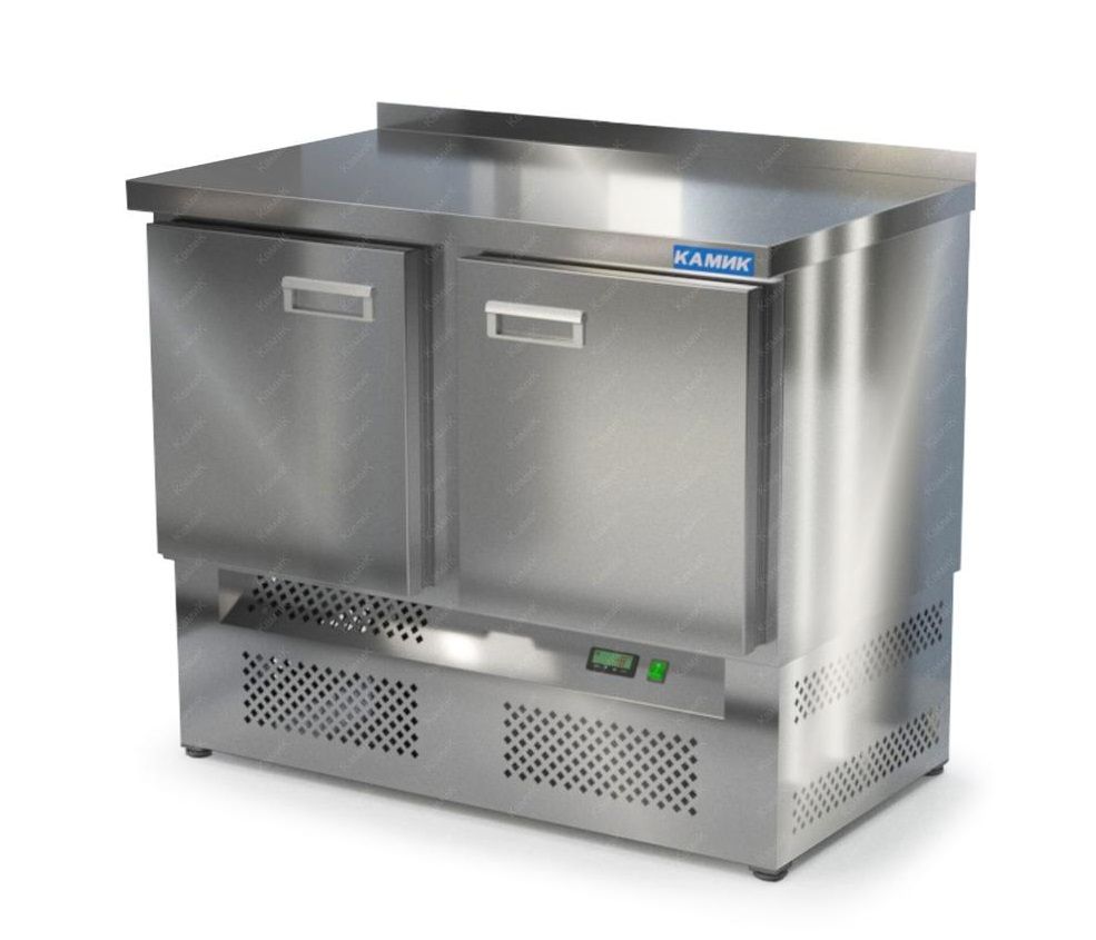 Холодильный стол КАМИК СО-10060Н используется на предприятиях общественного питания и торговли для охлаждения и хранения продуктов, напитков и готовых блюд. Конструкция разделена на секции, каждая из которых оборудована сетчатой полкой и парой направляющих. Корпус выполнен из нержавеющей стали AISI 430 толщиной 1 мм, столешница - из нержавеющей стали AISI 304 толщиной 1,5 мм.