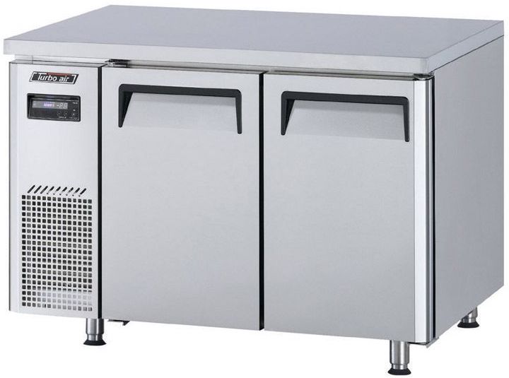 Холодильный стол Turbo air KUR12-2 состоит из рабочей поверхности, на которой можно раскатывать тесто и обрабатывать ингредиенты для приготовления блюд, и камеры, предназначенной для охлаждения и кратковременного хранения скоропортящихся продуктов и напитков на предприятиях пищевой промышленности, общественного питания и торговли. Корпус выполнен из нержавеющей стали с применением пожаробезопасных стенок толщиной 60 мм и уплотнения из теплоэффективного АБС-пластика (акрилонитрилбутадиенстирола), не пропускающего конденсата, оборотная сторона и низ - из гальванизированной стали, пол - из нержавеющей стали с алюминиевыми вставками по бокам и сзади, регулируемые полки - из толстой стальной проволоки с виниловым покрытием, 4 регулируемые ножки - из нержавеющей стали.
