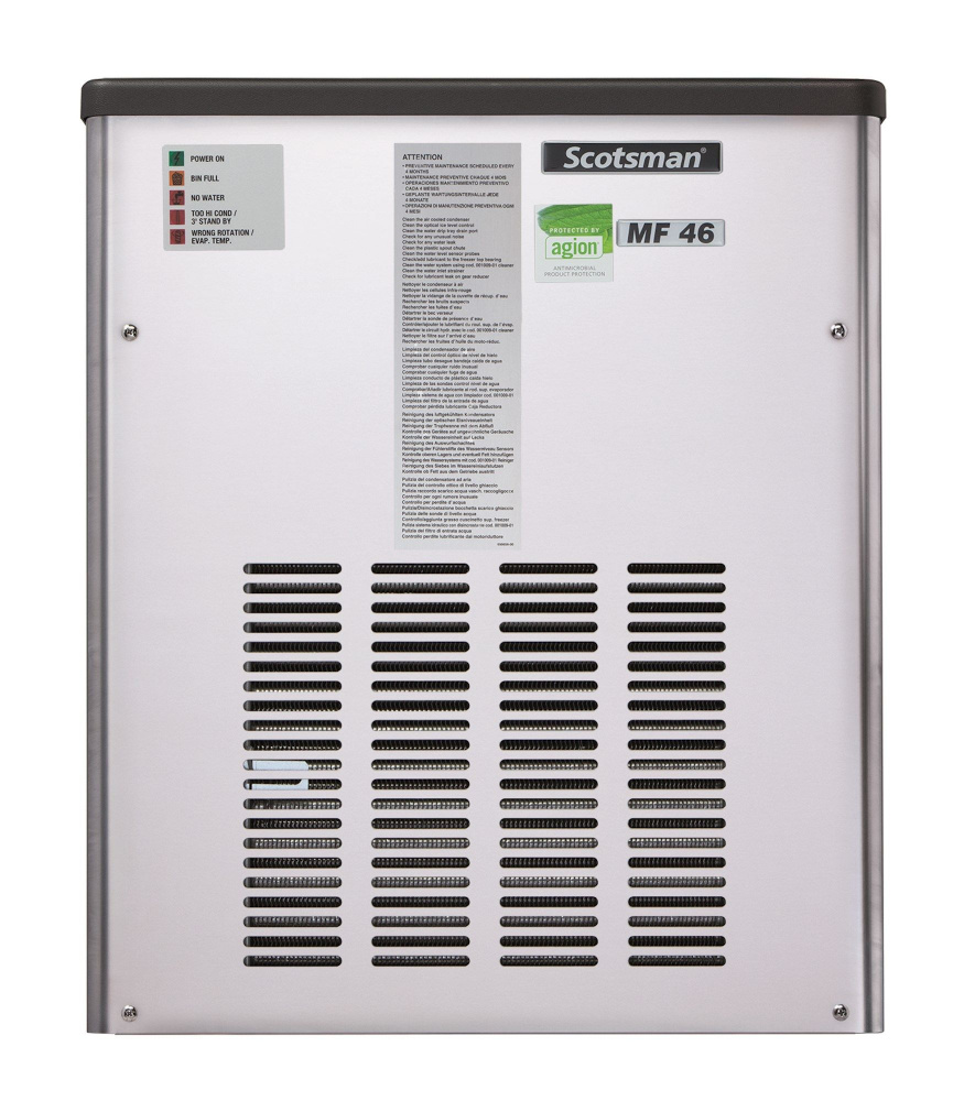 Льдогенератор SCOTSMAN (FRIMONT) MF 46 WS OX с системой дезинфекции XSafe используется для производства гранулированного льда на предприятиях общественного питания и торговли. Благодаря технологии AgION™ все детали прибора, изготовленные из пластика, становятся устойчивыми к возникновению и росту бактерий, тем самым повышая санитарную безопасность.