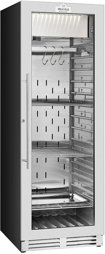 Шкаф для мяса MeatAge VI180 WT предназначен для охлаждения и вызревания мяса, ветчины и салями в частных домах, квартирах, отелях и офисах. Модель оснащена акустической сигнализацией и запираемой дверью. Корпус и комплектующие выполнены из нержавеющей стали AISI 304, дверца - из ударопрочного закаленного стекла.