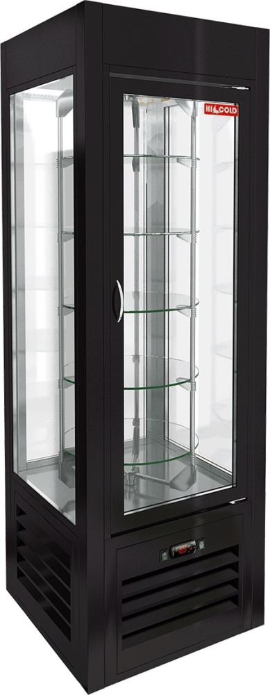 Кондитерская витрина HICOLD VRC 350 R SH Black используется на предприятиях общественного питания и торговли для демонстрации, охлаждения и кратковременного хранения кондитерских изделий и десертов. Модель оснащена 5 вращающимися полками, светодиодной подсветкой и колесами со стопорами. Корпус выполнен из окрашенной стали.