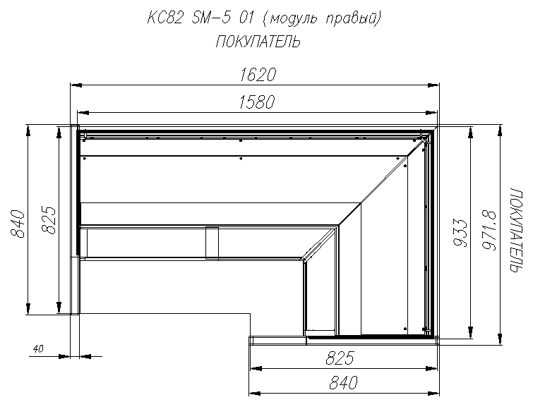 Угловая кондитерская витрина Carboma KC82 SM-5 01 используется на предприятиях общественного питания и торговли для демонстрации, охлаждения и кратковременного хранения тортов, пирожных и других кондитерских изделий. Модель оснащена прямым передним стеклом и регулируемыми ножками высотой от 30 до 50 м. Корпус выполнен из стали с ППУ-теплоизоляцией, зона выкладки и столешница - из нержавеющей стали, раздвижные задние створки - из оргстекла, передняя панель - из МДФ белого цвета или декорированного под дерево.