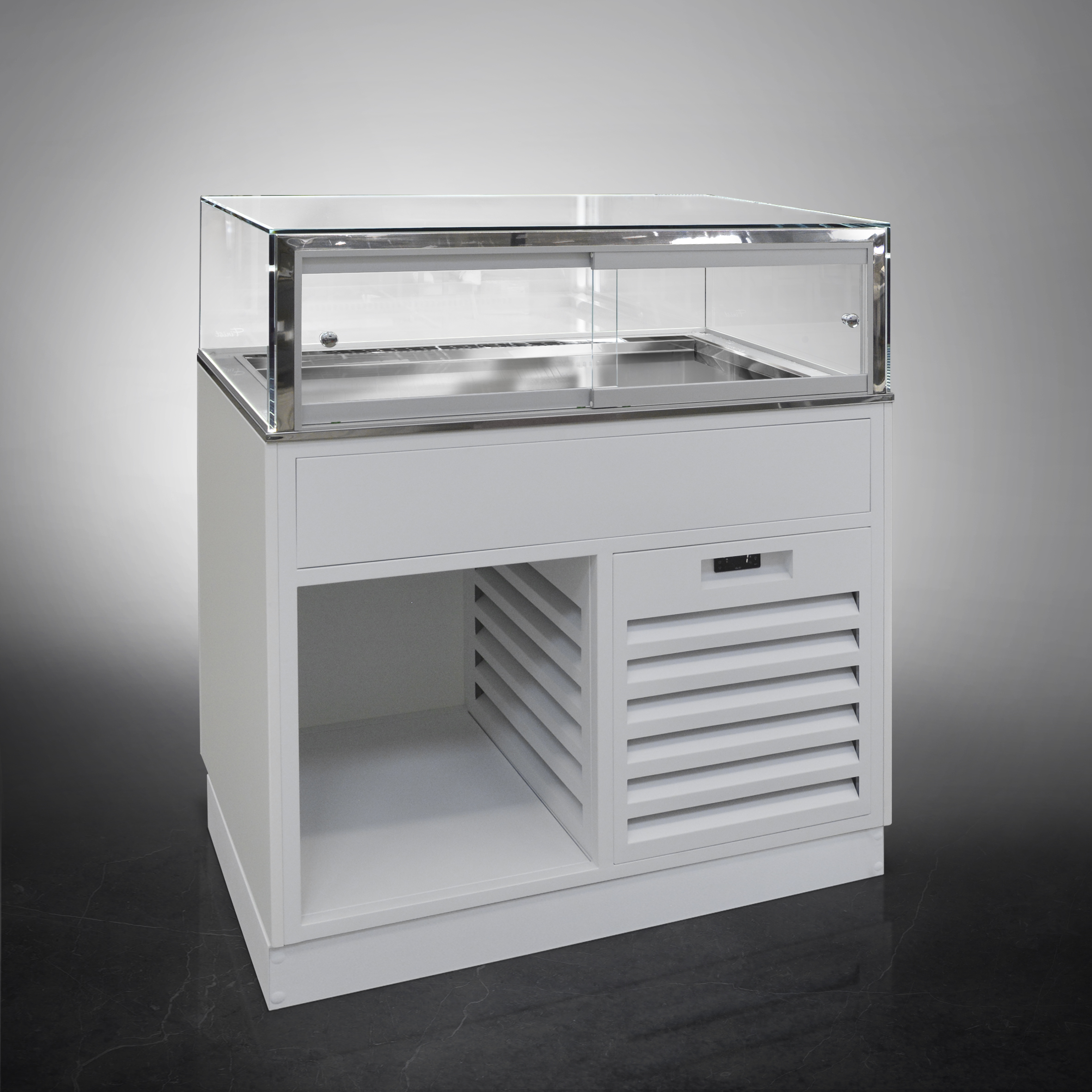 Холодильная витрина Finist GLASSIER LUX GL-10/55/3 используется для демонстрационной выкладки, охлаждения и хранения кондитерских и хлебобулочных изделий на предприятиях общественного питания и торговли. Модель оснащена микропроцессорным блоком, автоматической оттайкой, цоколем, светодиодной подсветкой и удобными дверцами купе. Материал фронтальных и боковых панелей облицовки - МДФ панели, материал купола - просветленное стекло, материал дна - высококачественная нержавеющая сталь.