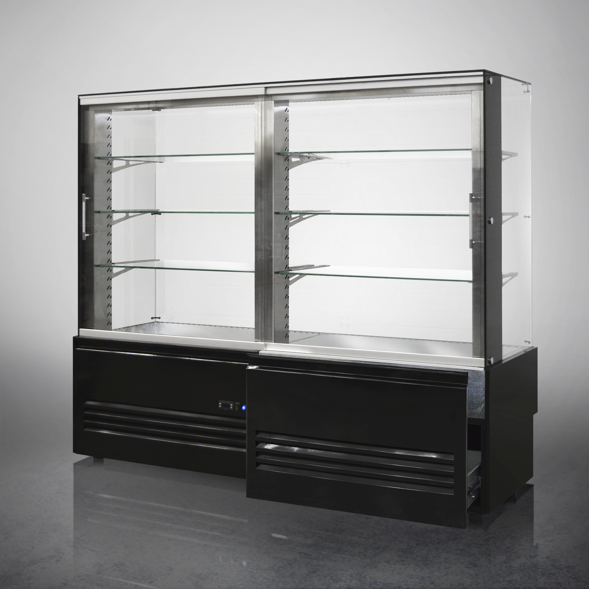 Удвоенная холодильная витрина Finist AIR LUX ADL-180-7-163 используется для демонстрационной выкладки, охлаждения и хранения кондитерских и хлебобулочных изделий на предприятиях общественного питания и торговли. Модель оснащена микропроцессорным блоком, автоматической оттайкой, светодиодной подсветкой каждой полки, 3 стеклянными полками, дополнительным местом для хранения инвентаря и удобными дверцами купе. Материал фронтальных и боковых панелей облицовки - МДФ панели, материал купола и полок - просветленное стекло, материал дна - зеркальная нержавеющая сталь.