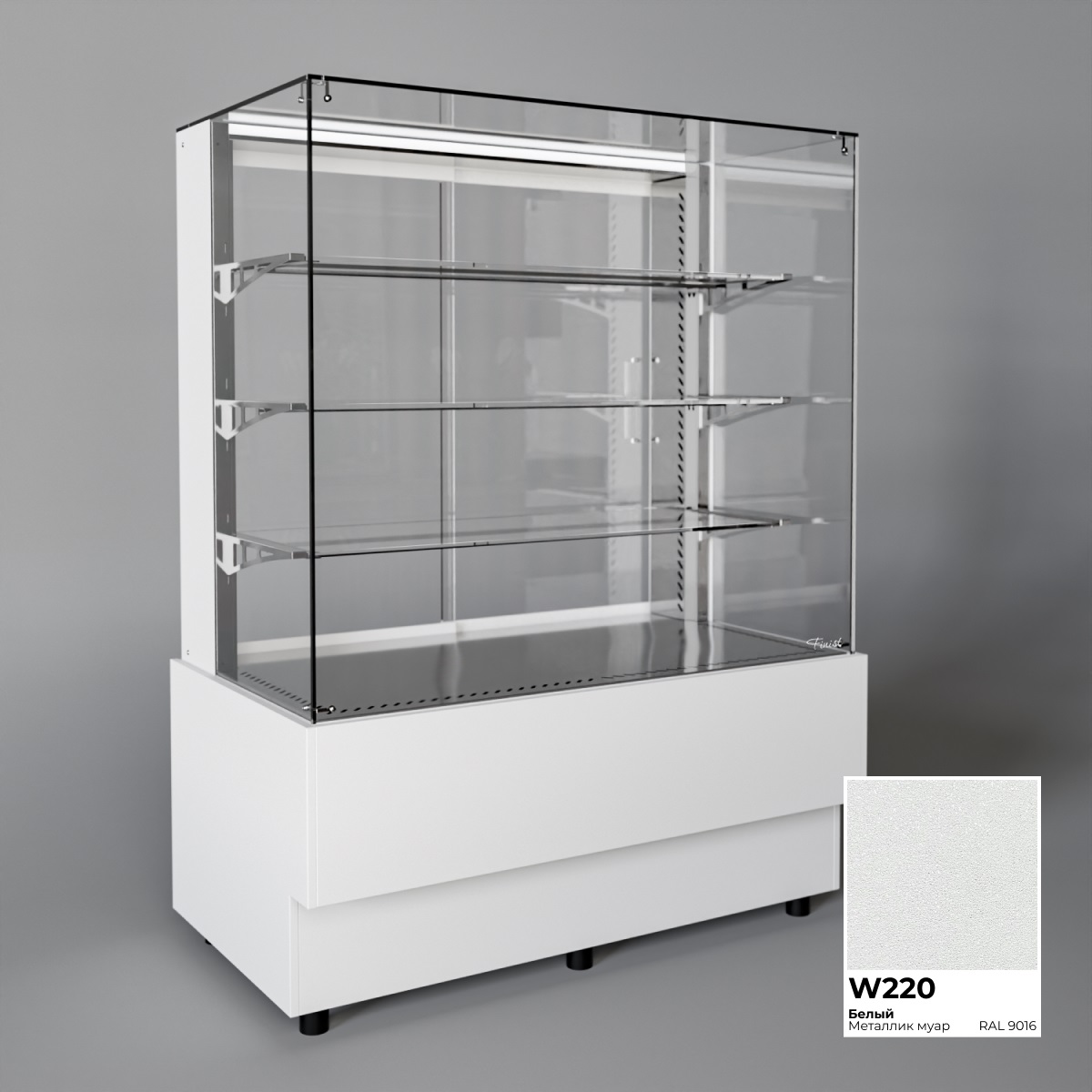Холодильная витрина Finist AIR A-13-7-163 используется для демонстрационной выкладки, охлаждения и хранения кондитерских и хлебобулочных изделий на предприятиях общественного питания и торговли. Модель оснащена микропроцессорным блоком, автоматической оттайкой, светодиодной подсветкой каждой полки, 3 стеклянными полками и удобными дверцами купе. Материал цельнозаливного корпуса - окрашенная сталь, материал купола и полок - просветленное стекло, материал дна - зеркальная нержавеющая сталь.
