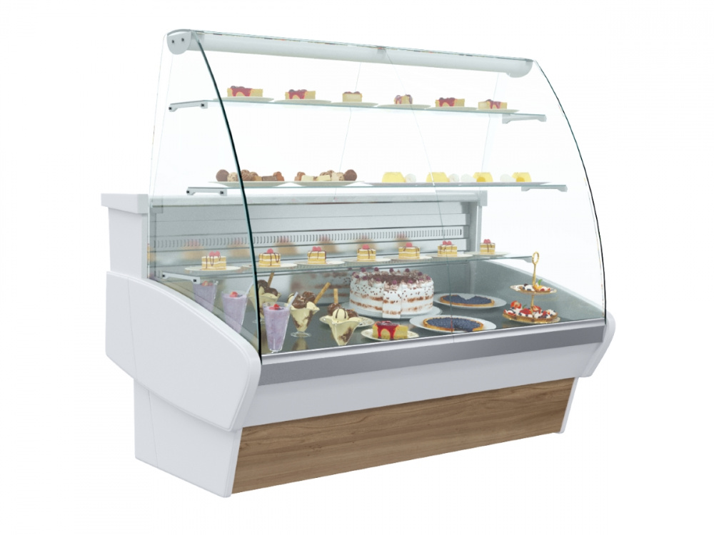 Кондитерская витрина Carboma K95 SM 1,2-1 (ВХСд-1,2) используется на предприятиях общественного питания и торговли для демонстрации, охлаждения и кратковременного хранения тортов, пирожных и других кондитерских изделий. Модель оснащена гнутым передним стеклом, 3 полками, выдвижными поддонами и регулируемыми ножками высотой от 20 до 35 м. Корпус выполнен из стали с ППУ-изоляцией, зона выкладки и столешница - из нержавеющей стали, раздвижные задние створки - из оргстекла.