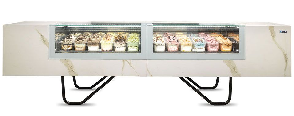 Благодаря инновационным технологиям размеры витрины сокращены до минимума: ISA ONESHOW STAND имеет в глубину всего лишь 720 мм. Благодаря этому она идеально подходит для установки в действующих заведениях. Витрина ISA ONESHOW STAND доступна также в версии для мороженого джелато, кондитерских изделий и шоколада.