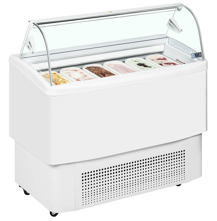 Витрина для мороженого ISA Fiji 140 используется на предприятиях общественного питания и торговли для демонстрации и хранения мороженого, сорбета и йогурта-мороженого. Каркас изготовлен из углеродистой стали, окрашенной порошковой краской, внутренняя и внешняя оболочки - из пластифицированной стали, поворотная крышка со стороны продавца - из метакрилата. Цельный корпус имеет изоляцию из пенополиуретана, вспененного углекислотой, без использования озоноразрушающих веществ.