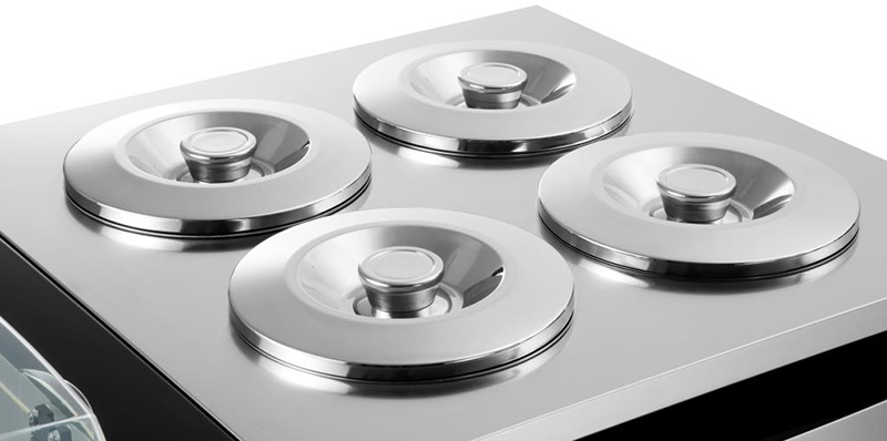 Напольная витрина для мороженого Nemox Sweet 4 Pozzetti используется в барах, кафе, на открытых летних площадках, в специальных отделах супермаркетов и торговых центрах для демонстрации и кратковременного хранения мороженого, сорбета и других продуктов. Модель оснащена 4 чашами, цифровым термостатом высокой точности и вентилируемым конденсатором. Корпус выполнен из лакированного МДФ черного цвета, отделка - из нержавеющей стали.