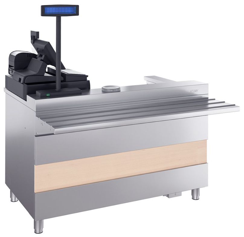 Кассовый стол ATESY Ривьера КСП-1120-02 используется на предприятиях общественного питания и торговли для оборудования рабочего места продавца-кассира. Модель оснащена розеткой для подключения кассового аппарата, расположенной со стороны обслуживающего персонала. Корпус и направляющая для подносов выполнены из нержавеющей стали AISI 430, столешница - из нержавеющей стали и усилена листом ламинированной ДСП толщиной 16 мм, ножки - из нержавеющей стали с пластиковой опорной частью.
