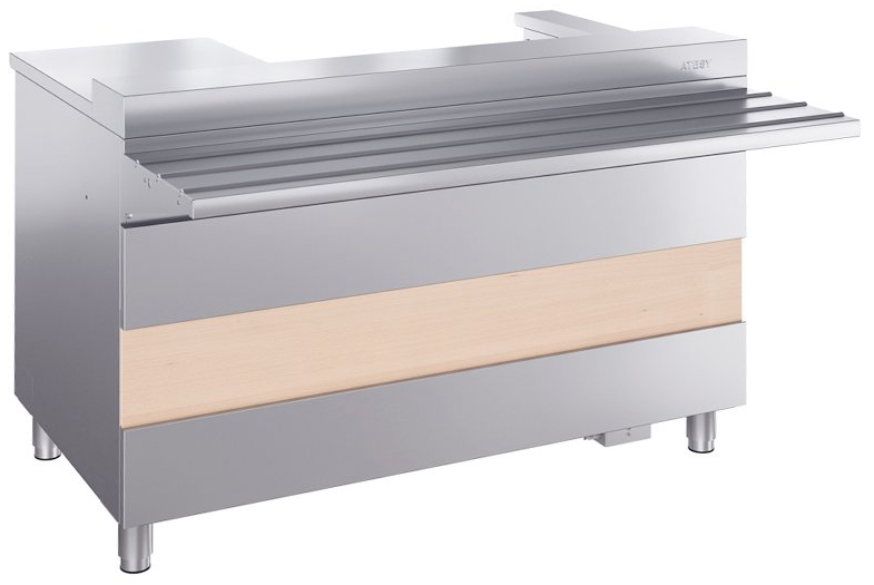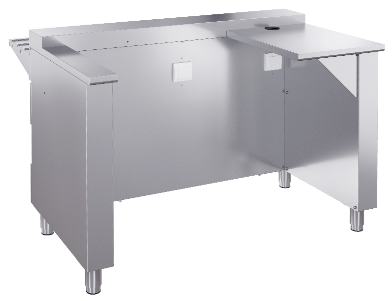 Кассовый стол ATESY Ривьера КСП-1200-02 используется на предприятиях общественного питания и торговли для оборудования рабочего места продавца-кассира. Модель оснащена розеткой для подключения кассового аппарата, расположенной со стороны обслуживающего персонала. Корпус и направляющая для подносов выполнены из нержавеющей стали AISI 430, столешница - из нержавеющей стали и усилена листом ламинированной ДСП толщиной 16 мм, ножки - из нержавеющей стали с пластиковой опорной частью.