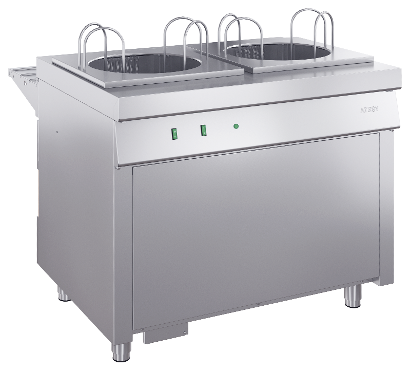 Модуль подогрева тарелок ATESY Ривьера МПТ-2.950-02 используется на предприятиях общественного питания и торговли для временного хранения тарелок и поддержания их в теплом состоянии. Модель оснащена 2 секциями для размещения тарелок. Столешница выполнена из нержавеющей стали AISI 430 и усилена листом ламинированной ДСП толщиной 16 мм, ограничители - из нержавеющего прутка, ножки - из нержавеющей стали и пластиковой опорной части.