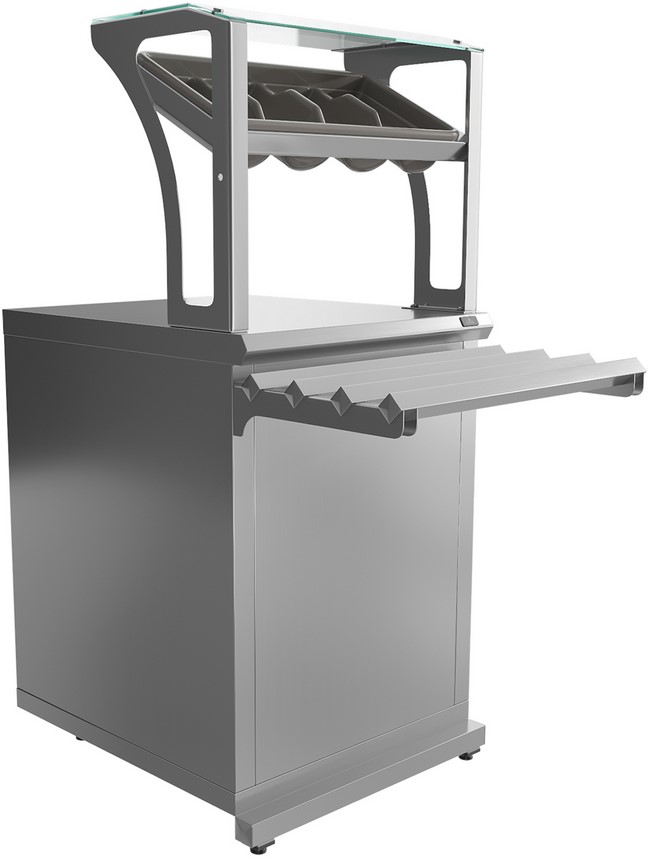 Прилавок Luxstahl ПП (С)-600 Premium используется в составе линии раздачи на предприятиях общественного питания и торговли для хранения и раздачи столовых приборов и подносов. Модель оснащена верхней полкой из двойного стекла 6 мм. Материал изделия - высококачественная нержавеющая сталь.