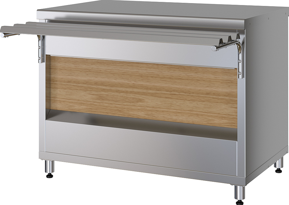 Прилавок нейтральный Марихолодмаш ПН11 используется в составе линии раздачи Шеф 1120 на предприятиях общественного питания, торговли и пищевых производствах для демонстрационной выкладки и кратковременного хранения различных блюд, хлебобулочных и кондитерских изделий, напитков и посуды. Материал корпуса - высококачественная нержавеющая сталь.