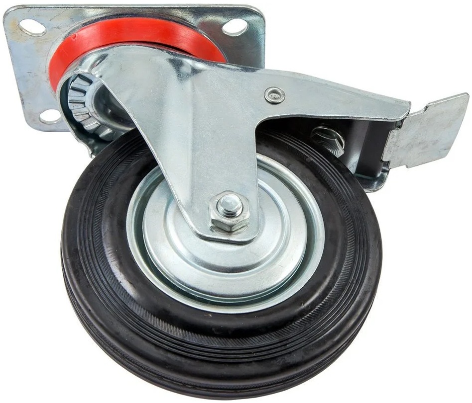 Колесо поворотное Дигрус ПКОТ-Д 125 (D125) используется для установки на грузовые тележки на предприятиях общественного питания, торговли и пищевых производствах. Модель с тормозом. Материал колес - резина.