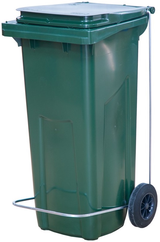 120 л. 55*45*96 см. зеленый, с крышкой на колёсах с педалью