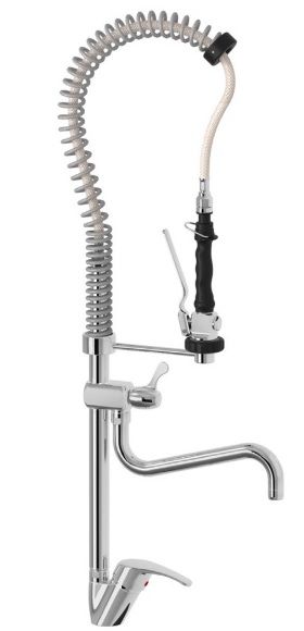 Душирующее устройство FRIULI 941000 предназначено для ежедневного использования и подачи воды на кухнях в пекарнях, столовых, кафе, ресторанах и на других предприятиях общественного питания. Смеситель устанавливается на моечную ванну. Модель оснащена смесителем типа "елочка" с короткой кулисой, душем Jolly и дополнительным краном и поворотным гусаком.