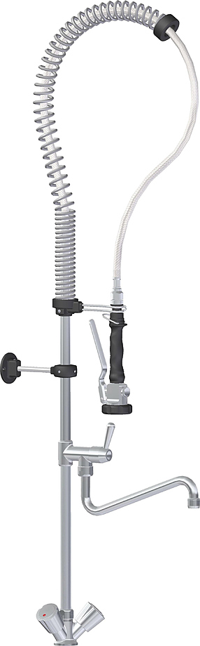 Душирующее устройство RUBINETTERIE DEL FRIULI 00958013 используется для ежедневного использования и подачи воды на кухнях в пекарнях, столовых, кафе, ресторанах и на других предприятиях общественного питания и пищевых производствах. Модель оборудована смесителем типа "елочка", душем с настенным креплением, поворотным гусаком, а также дополнительным краном.
