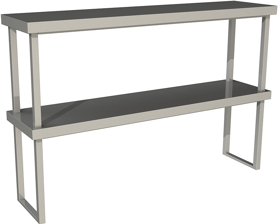 Кухонная двухъярусная полка Restoinox ПНС2-19/4 предназначается для установки на производственные столы, хранения посуды, кухонного инвентаря и сыпучих продуктов на предприятиях общественного питания, торговли и пищевых производствах. Материал каркаса - труба из нержавеющей стали (25х25 мм), материал полки - нержавеющая сталь AISI 430 (толщина 0.8 мм).