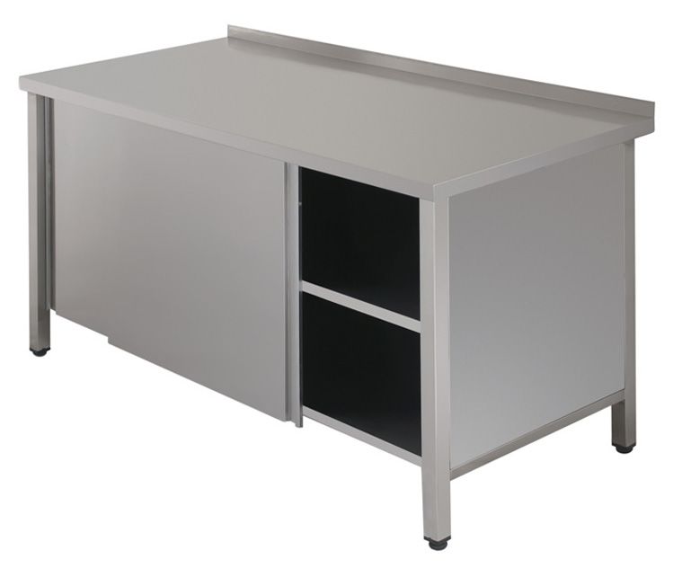Simeco СЗE1506БК используется на предприятиях общественного питания и торговли для приготовления различных блюд, а так же для хранения посуды и сыпучих продуктов. Модель закрыта с трех сторон. Имеет двери-купе и сплошную полку из нержавеющей стали. Каркас стола выполнен из нержавеющей стали AISI 430, столешница - из нержавеющей стали AISI 430. Ножки - труба 40х40 мм.