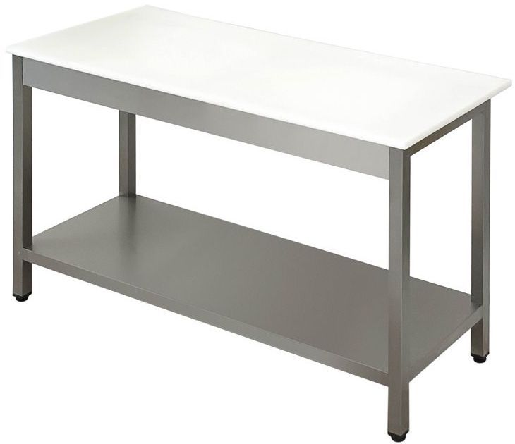 Стол разделочный Simeco СРП1807П используется на предприятиях общественного питания и торговли для разделки и приготовления различных блюд. Модель имеет сплошную нижнюю полку и фартук 100 мм по фасаду. Каркас стола выполнен из нержавеющей стали AISI 430, столешница - полипропилен толщиной 20мм. Ножки - труба 40х40 мм.