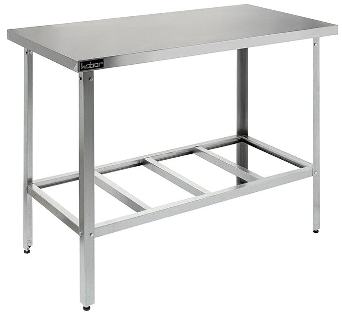 Столешница стола Кобор СР-90/60/430 произведена из высококачественной нержавеющей стали, а также для увеличения прочности и во избежание прогибания укреплена ламинированной древесно-стружечной плитой толщиной 16 мм. Ножки стола регулируются по высоте, что помогает избежать наклона рабочей поверхности стола. Каркас стола выполнен из нержавеющего уголка. Товар поставляется в разобранном виде и в упаковке для облегчения транспортировки.