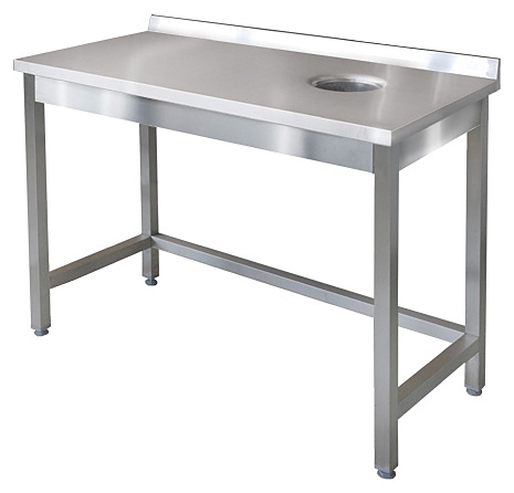 Стол ITERMA СБ-241/1206П используется на предприятиях общественного питания и торговли для разделки и обработки пищевых продуктов, а также для сбора отходов, появляющихся в процессе этой работы. Модель оснащена ножками, регулирующимися по высоте. Разборный каркас выполнен из нержавеющей стали, столешница - из нержавеющей стали с двойной ламинированной ДСП. Отверстие для сбора отходов расположено справа.
