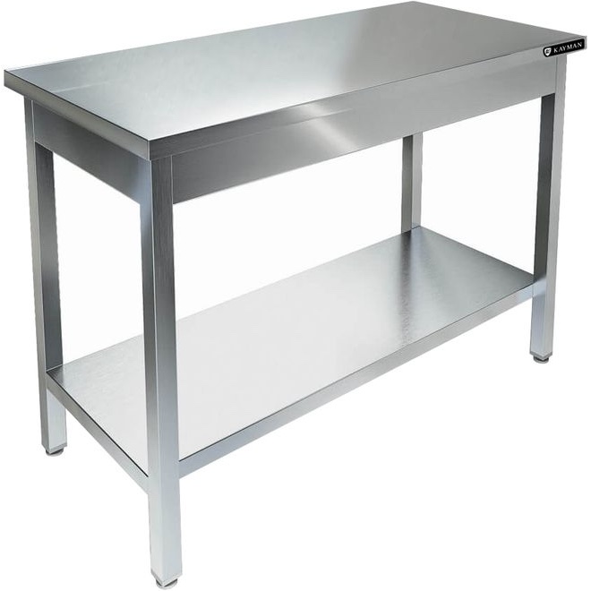 Производственный стол KAYMAN СЦ-222/1506 используется на предприятиях общественного питания и торговли для раскатки теста и обработки ингредиентов для приготовления блюд, а также как дополнительное место для установки и хранения кухонных приборов, инвентаря и сухих продуктов. Каркас выполнен из нержавеющей трубы AISI 430 40х40 мм, столешница - из нержавеющей стали AISI 430 толщиной 0,8 мм, усилена листом ЛДСП толщиной 16 мм.